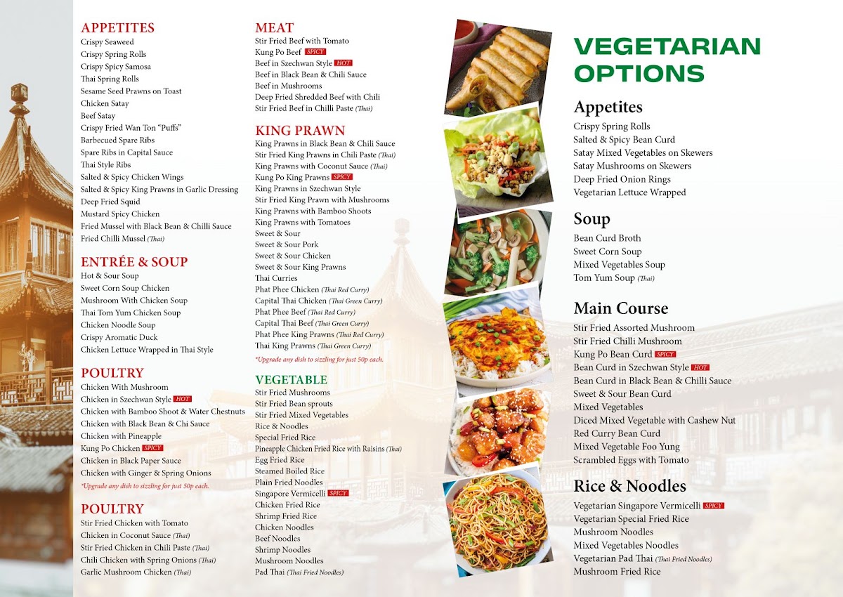 The heart of the menu leans into sauce-driven stir-fries and well-known house specialties. Pork in Barbecue Sauce is the kind of sweet-savory staple that pairs effortlessly with almost anything on the table, while Chicken with Black Bean Sauce offers deeper, saltier richness for anyone who prefers more umami-forward flavors. For something with crunch and contrast, Chicken and King Prawns with Cashew Nuts stands out as a dependable favorite, combining tender proteins with nutty texture. Vegetable choices feel like more than an afterthought: Stir Fried Mixed Vegetables and Broccoli keep the meal balanced and are ideal add-ons when you want freshness alongside stronger sauces.